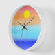 Modern Sunset on beach watercolor Retro Ombre summer red orange