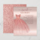 Featuring a pretty blush pink dress and faux rose gold glitter with modern script and popular typography, this birthday invitation is perfect for a princess celebrating her sweet 16th birthday.