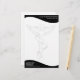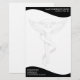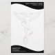 This chiropractic stationery features black swirls along the top and bottom, and a light gray silhouette of a chiropractic angel/caduceus emblem.