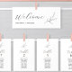 Minimalist Olive Leaf Branch Modern Wedding Table Number Seating Charts Card with Guest Names. All the texts are pre-arranged for you to personalize easily and quickly with your own details.