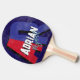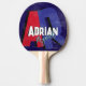Stylish table-tennis-racket personalized with his name in cool fonts, with big oversized red and blue initial letters with shadow over a solid dark blue background... modern monogrammed design, personalized with the name of the stylish player...