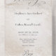 AVAILABLE WITH OR WITHOUT A QR CODE OR DINNER SELECTION OPTIONS. This design features a simple tan marble background under a soft white transparent overlay. The back flap displays the bride and groom's initials. Simple and elegant. Created by Simply Farmhouse Press.