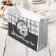 The design features a pair of ice skates over a snowflake crest and an off-white tartan pattern background. This elegant winter sports design serves as a cute modern and unique large gift bag with personalized text for Christmas, birthday, ice skating event party, or any other special occasions.