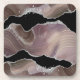 Modern Taupe & Black Agate Silver Glitter Beverage Coaster
