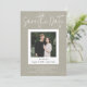 This modern wedding save the date invitation is a casual thoughtful design for couples who want to announce their engagement in style. Your engagement photo of choice is front and center in a snapshot style photo frame and custom text in a handwritten style. This is a fully customizable wedding save the date template in a neutral taupe beige with a subtle faux fabric overlay. All colors and text can be changed in the design tool - make all the changes you want and make this save the date invitations uniquely yours!