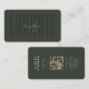 Modern Teacher Professor Monogram Dark Green Gold business card with QR code