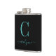 Chic Elegant Teal Monogram Script on a chic Black Flask. Easy to customize with your own name and details. Perfect for your luxury lifestyle! Please contact us at cedarandstring@gmail.com if you need assistance with the design or matching products.