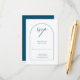 Modern, minimal teal blue arch RSVP enclosure card with script word RSVP.
