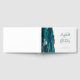 This elegant wedding guest book features a teal blue watercolor agate design trimmed with faux gold glitter. Easily customize the charcoal text on a white background, with the names of the bride and groom in whimsical handwriting calligraphy over a large pale teal ampersand. Add additional text of your choice to the front and spine.