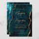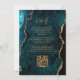 Modern Teal Blue Agate Script QR Code Wedding Invitation