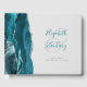 Modern Teal Blue Agate Silver Script Gray Guest Book