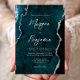 Modern Teal Blue Agate Silver Script Wedding Invitation