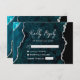 Modern Teal Blue Agate Silver Script Wedding RSVP