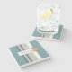 Modern Teal Blue and Tan Striped Floral Stone Coaster