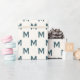 custom monogram pattern wrapping paper in cream and teal blue. Perfect for a personalized christmas gift wrapping or for any holiday celebration or birthday gifting. It also features a modern minimalist font for the retro lovers and contemporary minimalists. This Gift Wrap will make an unforgettable and unique gift wrapping.
