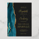 Modern Teal Blue Gold Agate Dark Wedding Foil Invitation