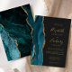 Modern Teal Blue Gold Agate Dark Wedding Foil Invitation