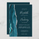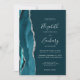 Modern Teal Blue Silver Agate QR Code Wedding Invitation