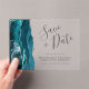 Modern Teal Blue Silver Agate Save the Date Card