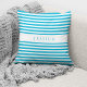 Modern Teal Blue Stripes Pattern Name Throw Pillow