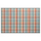 Modern Teal Dark Blue Orange White Plaid Pattern Fabric