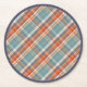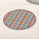 Modern Teal Dark Blue Orange White Plaid Pattern Round Paper Coaster