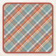 Modern Teal Dark Blue Orange White Plaid Pattern Square Paper Coaster