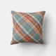 Modern Teal Dark Blue Orange White Plaid Pattern Throw Pillow