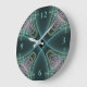 Modern Teal Geometric Fractal Art Graphic Large Clock