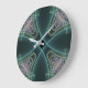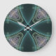 Modern Teal Geometric Fractal Art Graphic Large Clock