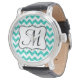 Modern Teal Glitter Chevron Zig Zag Stripe Fabric Print Pattern Watch