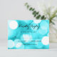 Trendy teal blue Bat Mitzvah RSVP card design with bokeh glitter lights background and modern script font. Designs are flat printed graphics - NOT ACTUAL GLITTER.