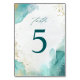 Modern Teal Gold Abstract Beach Wedding Table Number