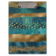 Modern teal and gold brush strokes and monogram clipboard featuring brush strokes in teal blue and gold and confetti.