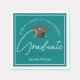 This modern teal custom senior graduation party napkin features your high school or college name for the class of 2025. Customize with your graduating year under the chic handwritten script and grey grad cap for great formal personalized graduate decor.