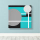 Wrapped Canvas: (Choose your size) - Teal rectangles, gray circles, white lines, black background.