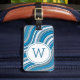Modern Teal Green Metallic Monogram Initial Luggage Tag