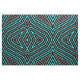 Add a bold statement to your next sewing or DIY project with this electric teal and charcoal grey geometric design. This pattern features an intricate, modern take on traditional tribal and Aztec motifs, utilizing concentric lines and diamond shapes to create a mesmerizing, almost optical illusion effect.