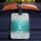 Modern Teal Holographic Faux Glitter Monogram Luggage Tag