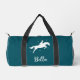 This modern teal gymnastics duffle bag is the perfect gift for a young equestrian, a horse lover, whisperer or riding instructor. Personalize it with your name in elegant script typography.