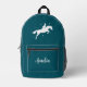 This modern teal gymnastics backpack is the perfect gift for a young equestrian, a horse lover, whisperer or riding instructor. Personalize it with your name in elegant script typography.