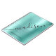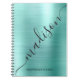 Modern Teal Metal Monogram Signature Script Name Notebook