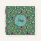 Modern Teal Queen Bee & Flowers Feminine Monogram Notebook