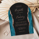 Modern Teal Rose Gold Agate Dark Arch Wedding Invitation
