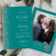 Modern Teal Silver Glitter Photo QR Code Wedding Invitation