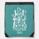Introducing our lovely girl drawstring bag, adorned with a modern script featuring an inspirational triathlon message: "Just a girl who loves triathlon", set against a cool turquoise teal background. This trendy, minimalist design boasts a playful white print and a customizable signature. Personalize the font, color, or replace it with your girl's name for a truly unique touch. Perfect for any triathlon enthusiast!