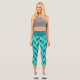 These modern capri leggings feature a trendy geometric herringbone pattern in teal and turquoise.