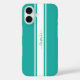 Modern Teal White Racing Stripes Monogrammed Chic Case-Mate iPhone Case