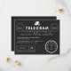 Customize this modern take on a vintage telegram and announce your wedding date in a fun and unique way! Shown in Classic Black and White with a mix of a typewriter and modern fonts.