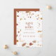 Modern and trendy terra-cotta terrazzo pattern, save the date announcement card. Rust orange stone pattern with chic typography design style template provides lines of coordinating orange text for a chic rustic save the date announcement.